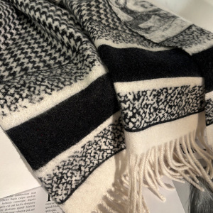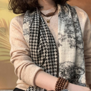 「意大利高奢丛林」羊毛围巾女冬季双面千鸟格加厚保暖围脖披肩