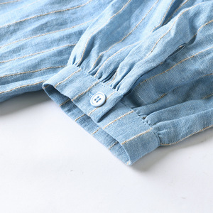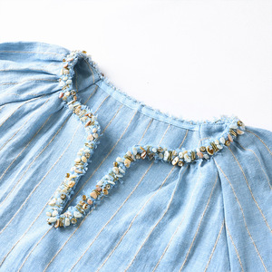 高级感手工钉珠亚麻衬衫女2025年秋季新款高级感蓝色条纹气质上衣