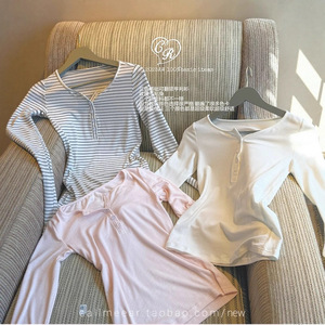 CallmeEar//简约公式莱赛尔羊毛长袖T恤女早秋修身显瘦上衣2025