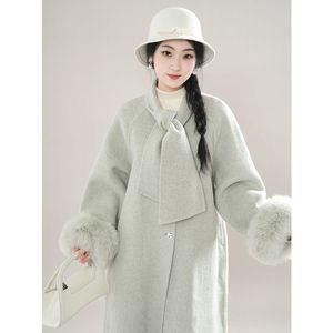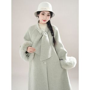 暮云间 呢子大衣女冬季感毛呢中长款外套富家千金风毛毛外套
