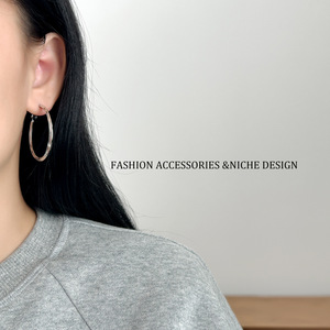 银色满圈柳叶暗纹大耳圈