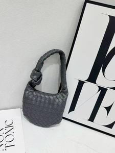 跨境爆款编织包时尚打结牛角手提包三角拉牌时尚软糯饺子包迷你号