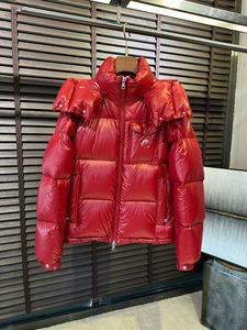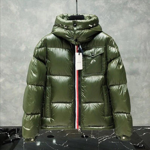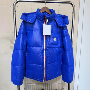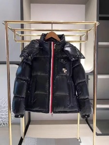 高品质蒙家新款亮面玛雅三色织带条男女同款棉服宽松百搭连帽外套