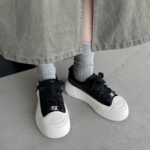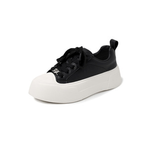 韩剧女主小白鞋舒适增高厚底牛皮2025松糕中跟金属扣真皮休闲单鞋