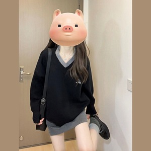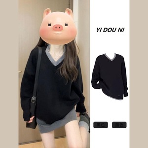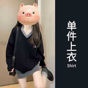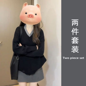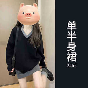 秋冬设计感小众宽松显瘦慵懒韩风针织毛衣半身短裙两件套装女纯色