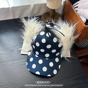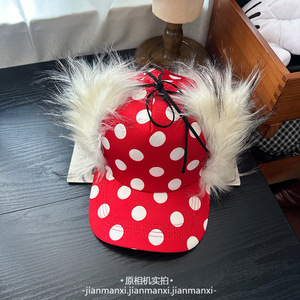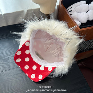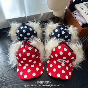 秋冬季保暖护耳翻檐波点鸭舌帽子女款时尚字母两戴护耳保暖雷锋帽