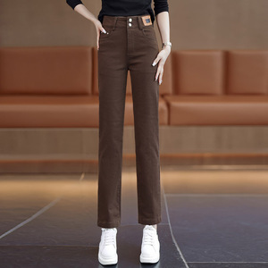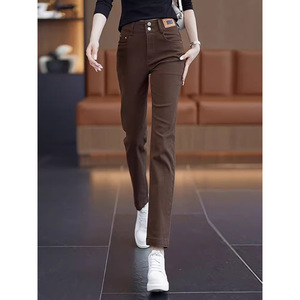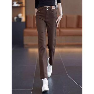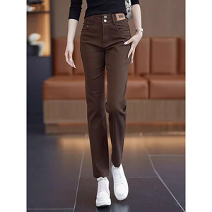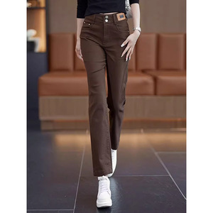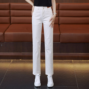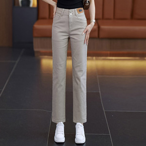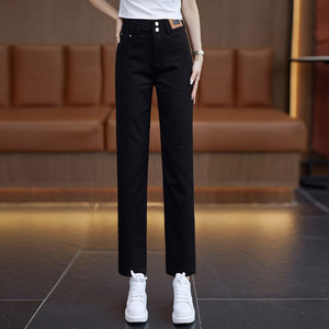 窄版直筒牛仔裤女2025年春秋季新款高腰时尚百搭哈伦裤小脚烟管裤
