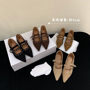 Q69-525~内增高~法式复古尖头玛丽珍单鞋女鞋子2025年秋季新款
