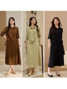 【知性时尚套装】纤莉秀大码女装时尚垂感显瘦两件套装胖mm秋新款