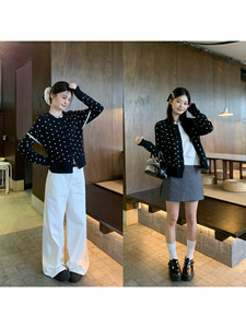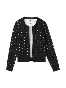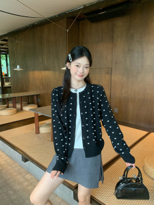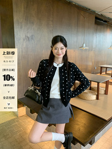 宋正恩黑色波点巨好看针织开衫外套女早秋韩系氛围感毛衣上衣