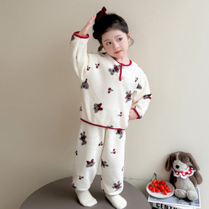 女童睡衣套装2025新款秋冬儿童法兰绒可爱小兔子保暖家居服珊瑚绒