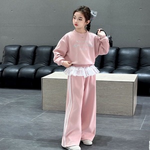 秒 女童2025秋款设计感荷叶边蕾丝拼接2件套