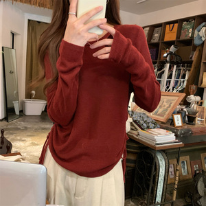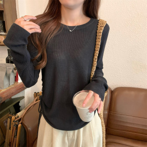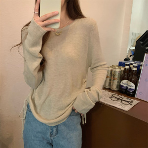 秋季2025新款气质宽松圆领抽绳百搭慵懒针织打底衫长袖上衣女毛衣