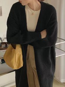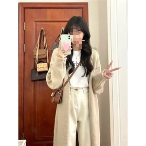 2025春新款女装百搭纯色针织开衫中长款东大门慵懒风秋冬毛衣外套