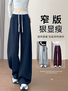 窄版香蕉阔腿裤女春秋2025新款休闲直筒小个子运动裤宽松弯刀卫裤