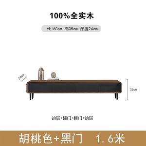 实木电视机柜房间圆角胡桃木色小型极简超薄全实木窄款落地电视柜