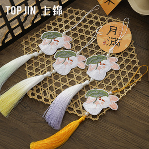 上锦 中秋节双面刺绣兔子流苏吊坠鲜花束礼盒DIY月兔玉兔挂饰穗子
