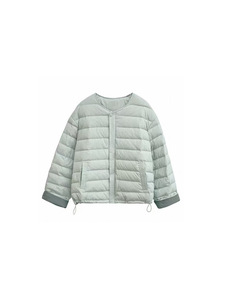 撞色圆领羽绒服女短款2025冬季甜美韩系小个子白鸭绒保暖排骨外套