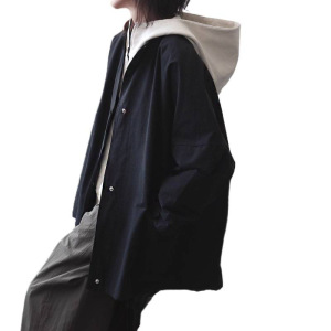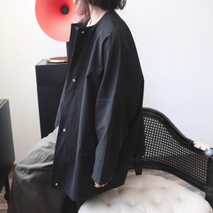 跨境日系廓形态度 暗黑系小众设计圆领宽松松弛感外套黑色风衣女