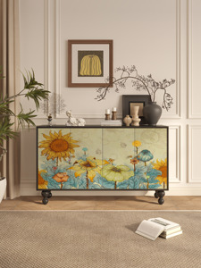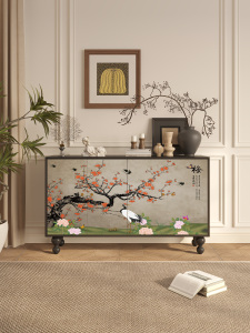 法式餐边柜复古鞋柜中古风酒店民宿实木储物柜可收纳置物玄关柜