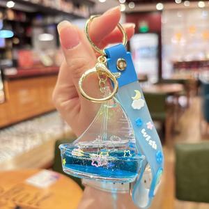 创意流沙永不沉没泰坦尼克钥匙扣精致海盗船漂浮帆船包包挂件礼品