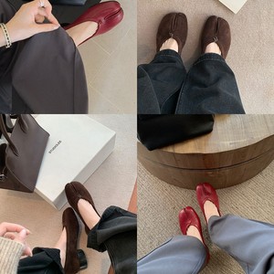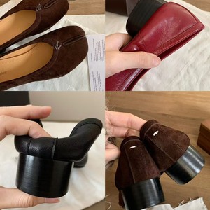 羊皮~葡萄妈同款4cm真皮猪蹄高跟鞋女褶皱芭蕾浅口单鞋粗跟分趾鞋