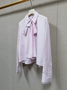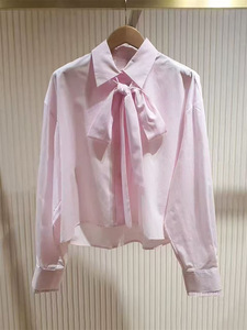 浅粉色蝴蝶结飘带衬衣
