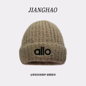 时尚冬季兔毛字母针织帽子女韩版纯色百搭保暖护耳毛线帽简约冷帽