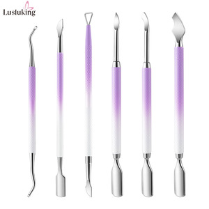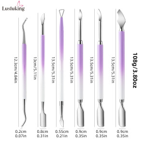 6支装紫白渐变色清洁刮刀小钢推 双头