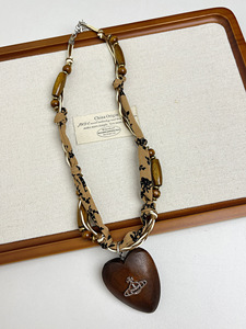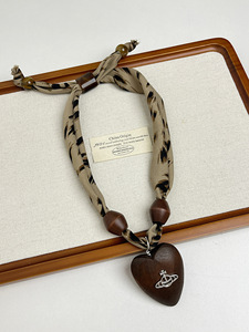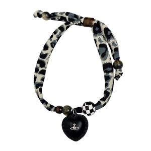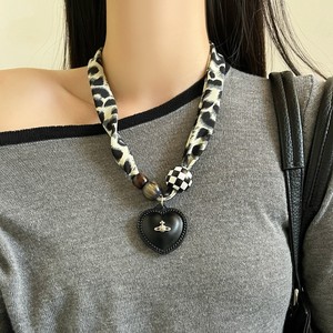 复古文艺豹纹丝巾项链女小众设计感彩色串珠毛衣链个性气质锁骨链