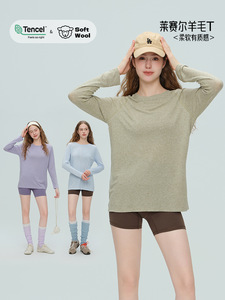 2025秋冬瑜伽服女天丝莱赛尔羊毛运动长袖透气吸湿健身服