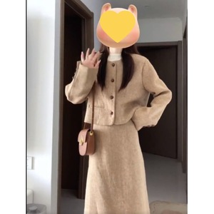 早秋韩系穿搭套装小香风高级感毛呢外套半身裙大方得体穿搭两件套