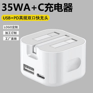 跨境35WA+C英规充电器双口快充头适用于苹果安卓手机USB+PD充电头