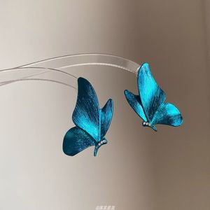法式新款超仙蓝色蝴蝶耳环优雅复古高级感蓝闪蝶耳钉