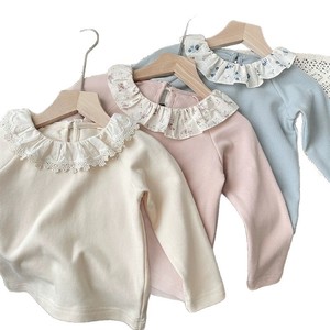 女童韩系春秋新品小碎花荷叶领长袖打底衫儿童翻领长袖棉t恤上衣