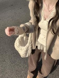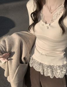 纯欲风蝴蝶结设计感长袖t恤女春秋bm风蕾丝花边修身内搭保暖上衣