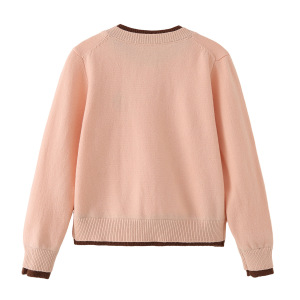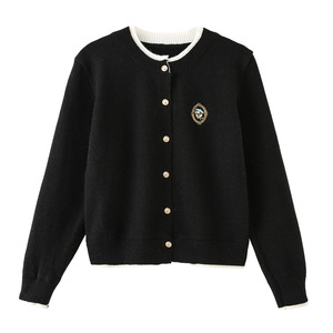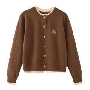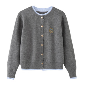 时尚减龄学院风针织开衫女2025秋季新款百搭撞色圆领卡通刺绣毛衣