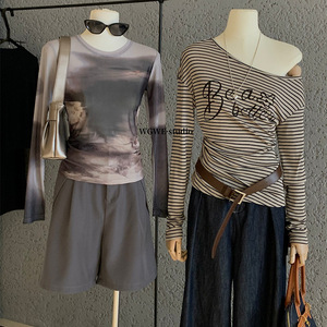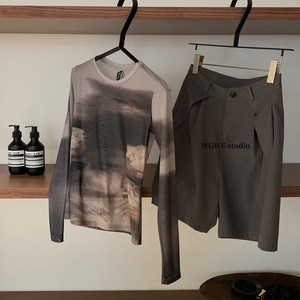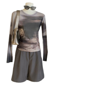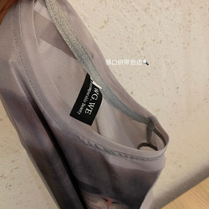 WGWE7096云盖雪猫咪印花皮肤百搭网纱t恤长袖打底