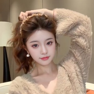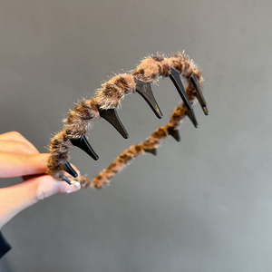 豹纹毛绒带齿波浪洗脸发箍女款碎发压法发卡秋冬发饰发根蓬松头箍