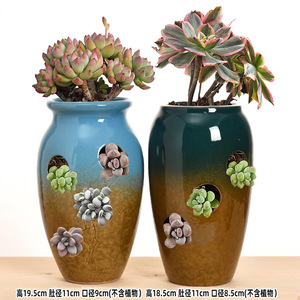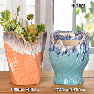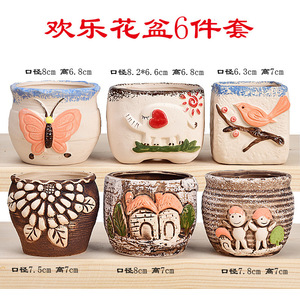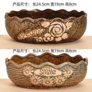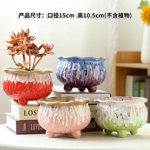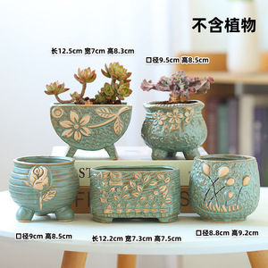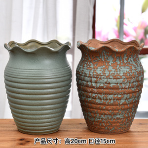 多肉花盆大量批发陶瓷植物粗陶复古素烧紫砂创意大小口径简约跨境