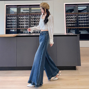 2025秋季新款复古蓝阔腿牛仔裤女长裤宽松显瘦喇叭裤子女款A7131