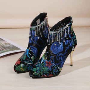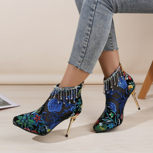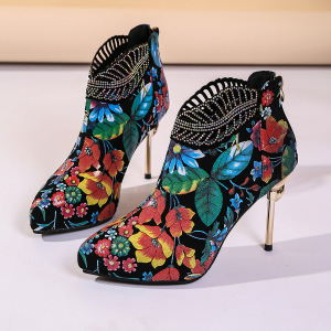 跨境外贸2025秋冬季新款大码高跟古风皮靴女士短筒细跟包头时装鞋