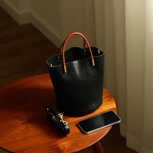 pehyewar | 日系小众绿色水桶包女士质感真皮手提包夏天牛皮女包