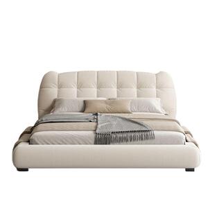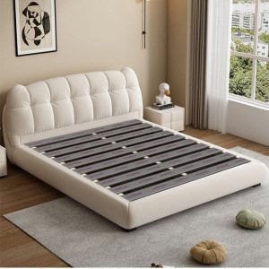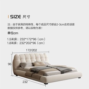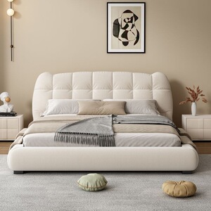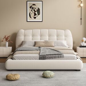 奶油床科技布双人床轻奢榻榻米落地床主卧大床现代简约布艺泡芙床
