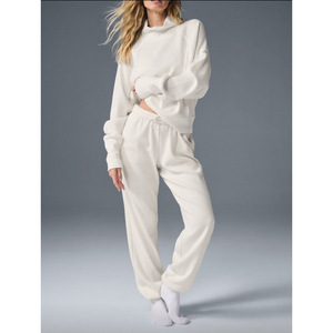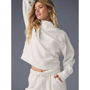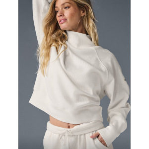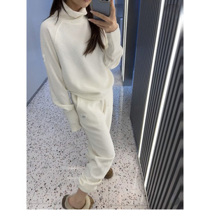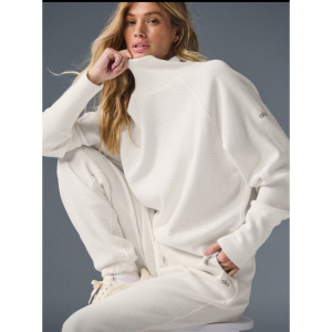 alo秋冬季新款华夫格高领宽松卫衣套头衫长袖休闲百搭运动套装女