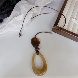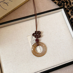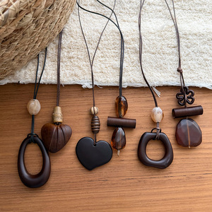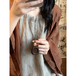 新中式镂空木质圆形吊坠项链女民族风气质锁骨链复古小众百搭项饰