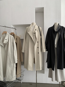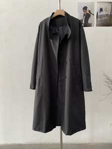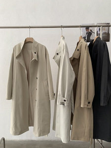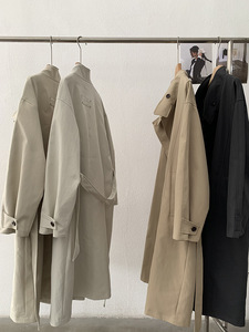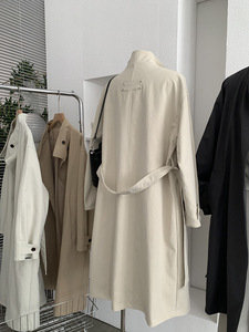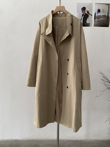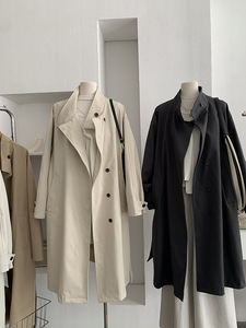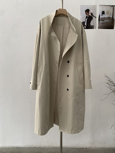 欧玛莱 超中长款宽松收腰腰带立领纯色单排扣长袖风衣外套女 4704