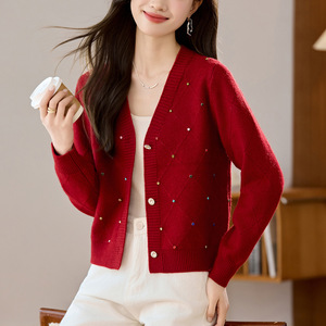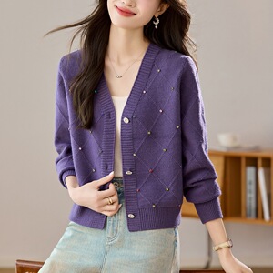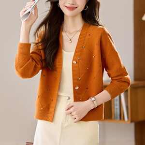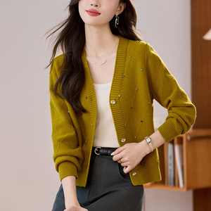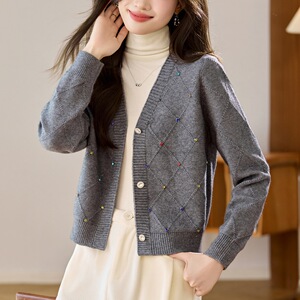 好看的早秋穿搭针织衫开衫2025新款设计感钉珠V领毛衣披肩外套