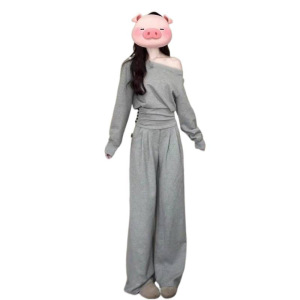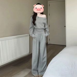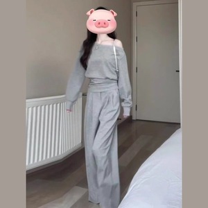 运动套装女秋季学生韩版宽松显瘦时尚网红炸街斜肩卫衣休闲两件套