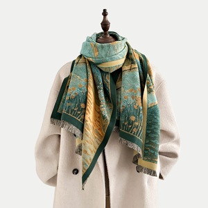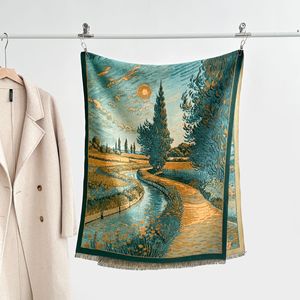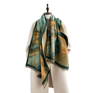 秋冬油画印花高端加厚仿羊绒围巾冬季高级感大气保暖旅游拍照披肩